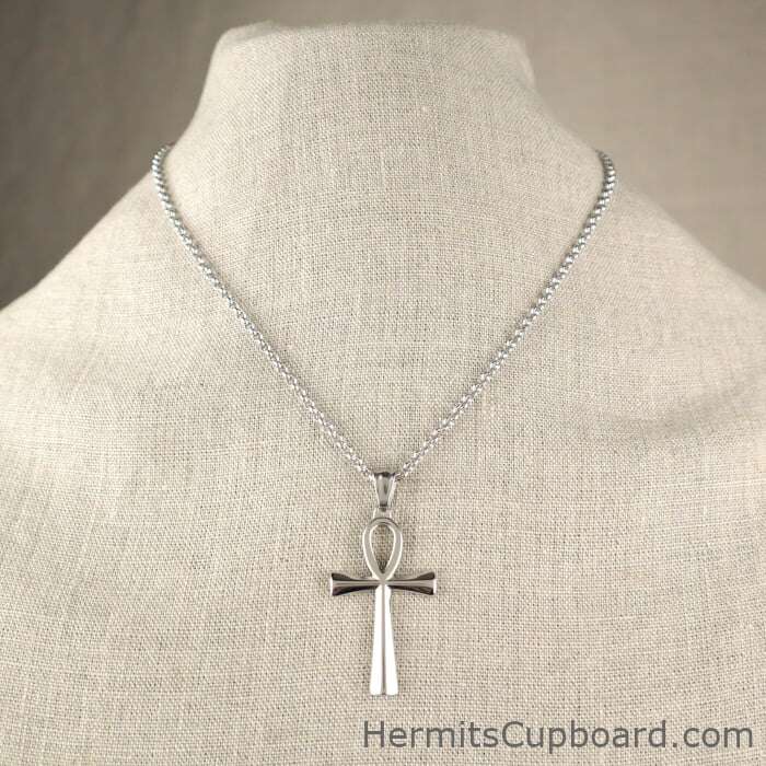Your Ankh Necklace includes a 1″ x 2″ stainless steel pendant and an 18″ stainless steel necklace with lobster claw clasp.