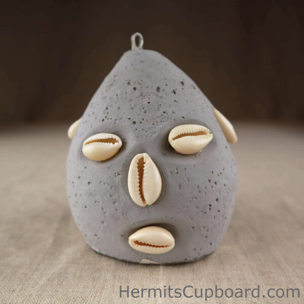 Santeria practitioners often have an Elegua head behind their front door as he is said to protect the entryway and prevent harm from entering the dwelling.