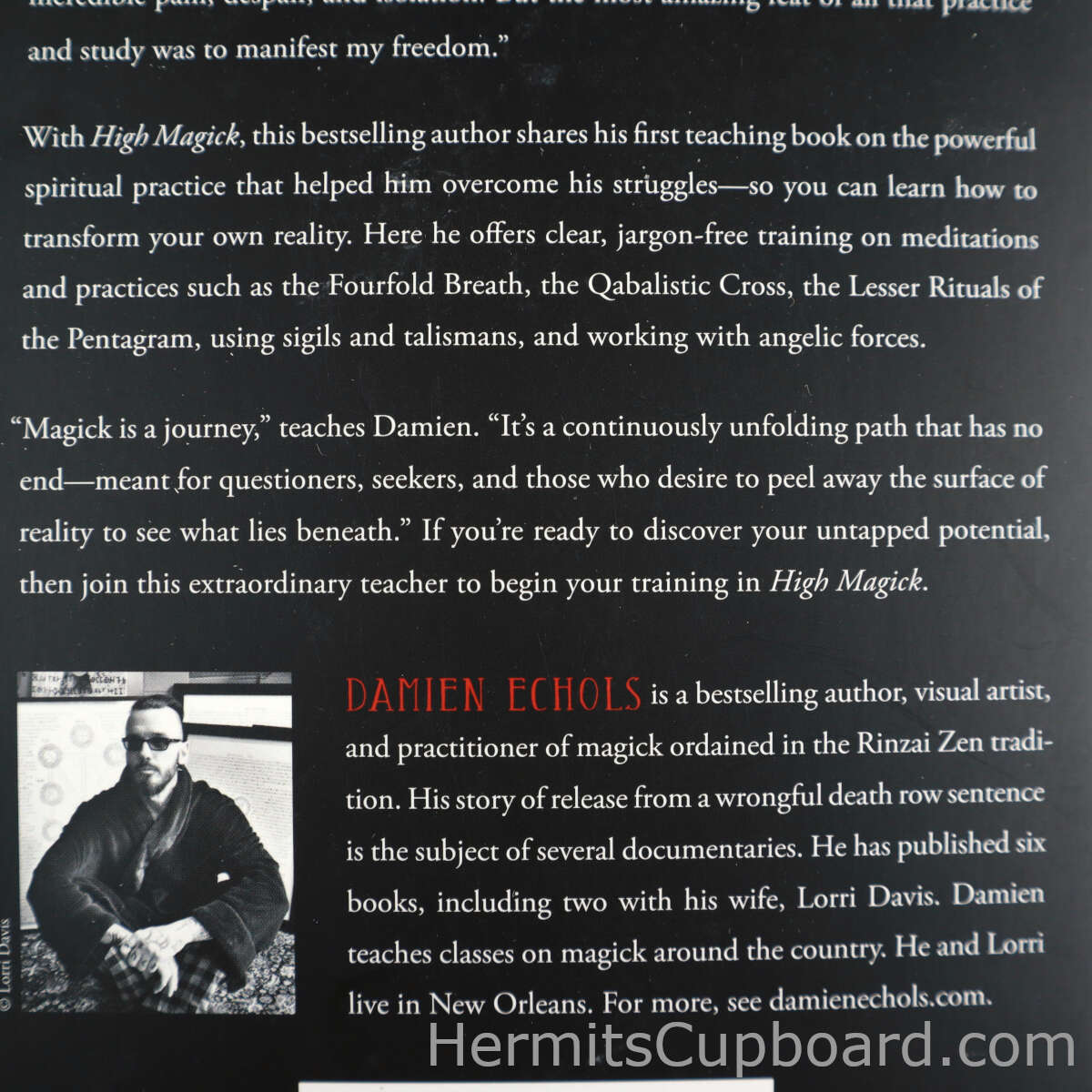 Damien Echols is a bestselling author, visual artist, and practitioner of magic ordained in the Rinzai Zen tradition. His story of release from a wrongful death row sentence is the subject of several documentaries. He has published six books including two with his wife, Lorri Davis. Damien teaches classes on magic around the country. He and Lorri live in New Orleans. For more, see damienechols.com