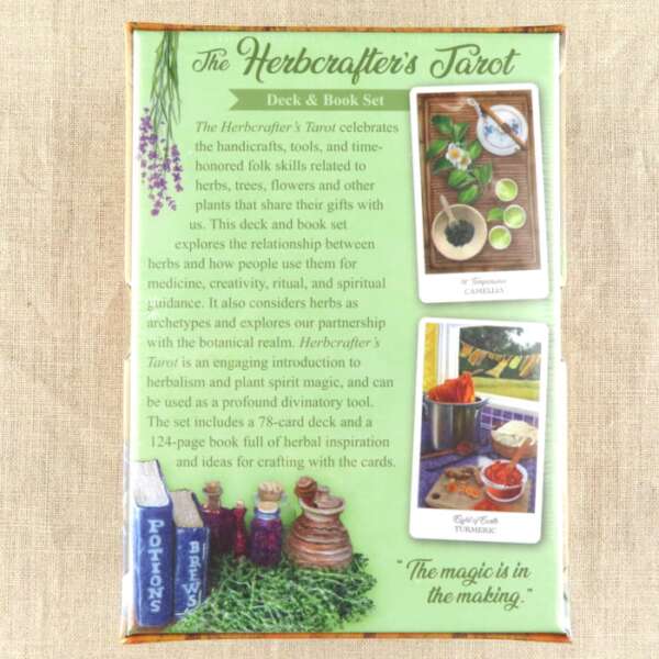 The Herbcrafter’s Tarot celebrates the handicrafts, tools, and time-honored folk skills related to herbs, trees, flowers and other plants that share their gifts with us. This deck and book set explores the relationship between herbs and how people use them for medicine, creativity, ritual, and spiritual guidance. It also considers herbs as archetypes and explores our partnership with the botanical realm. Herbcrafter’s Tarot is an engaging introduction to herbalism and plant spirit magic, and can be used as a profound divinatory tool.