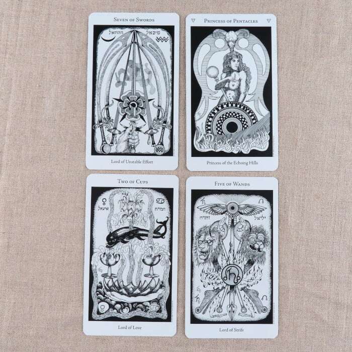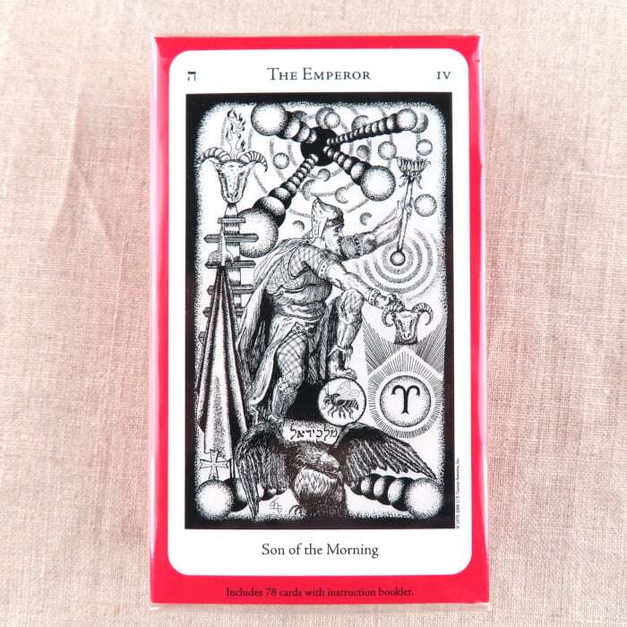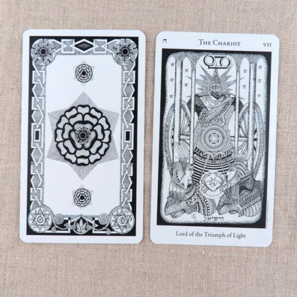Godfrey Dowson’s subtle black and white designs emphasize the Golden Dawn’s astrological attributes with further sephirotic, angelic, geomantic, numerical, and kabbalistic elements. All 78 cards feature an exquisite level of detail that highlights the powerful symbolism.